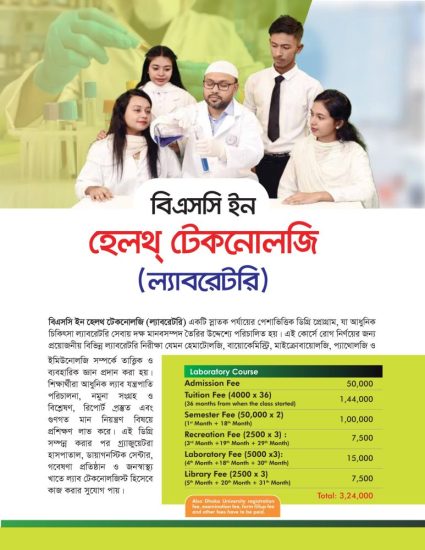 | বিএসসি ইন হেলথ্ টেকনোলজি (ল্যাবরেটরি) | ||