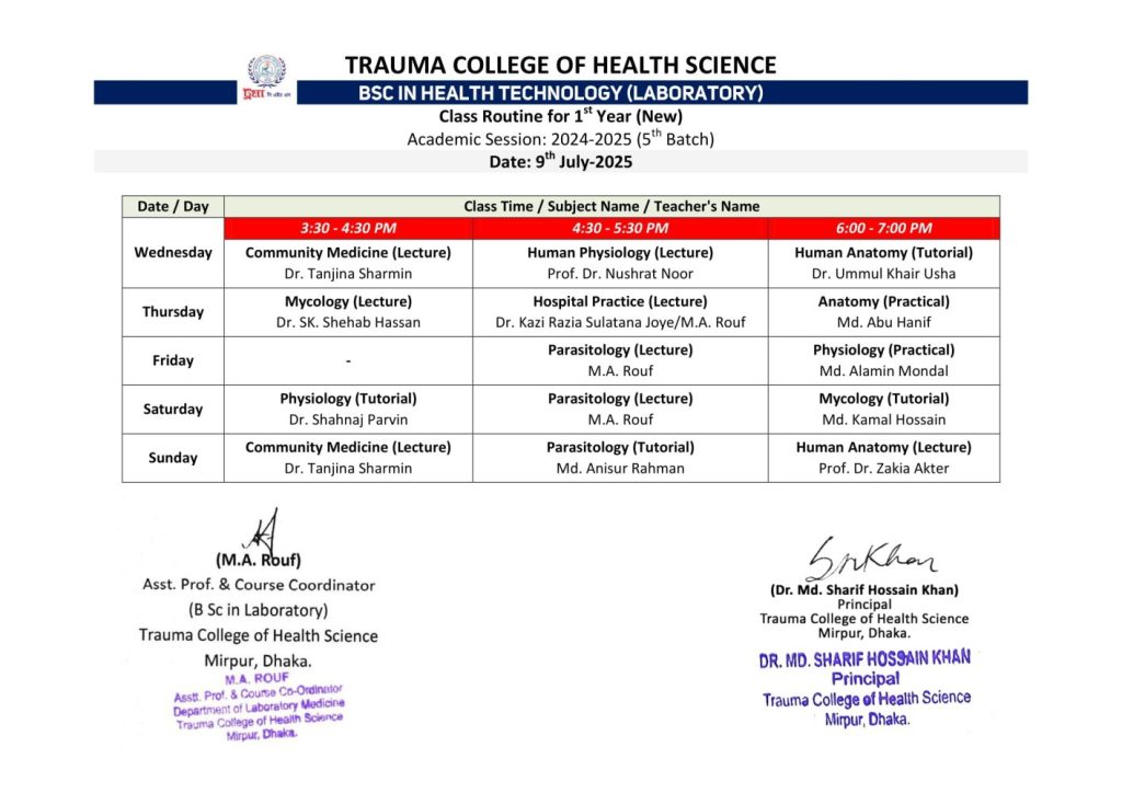 Laboratory New 1st Year Class Routine 2024-2025 (5th Batch)