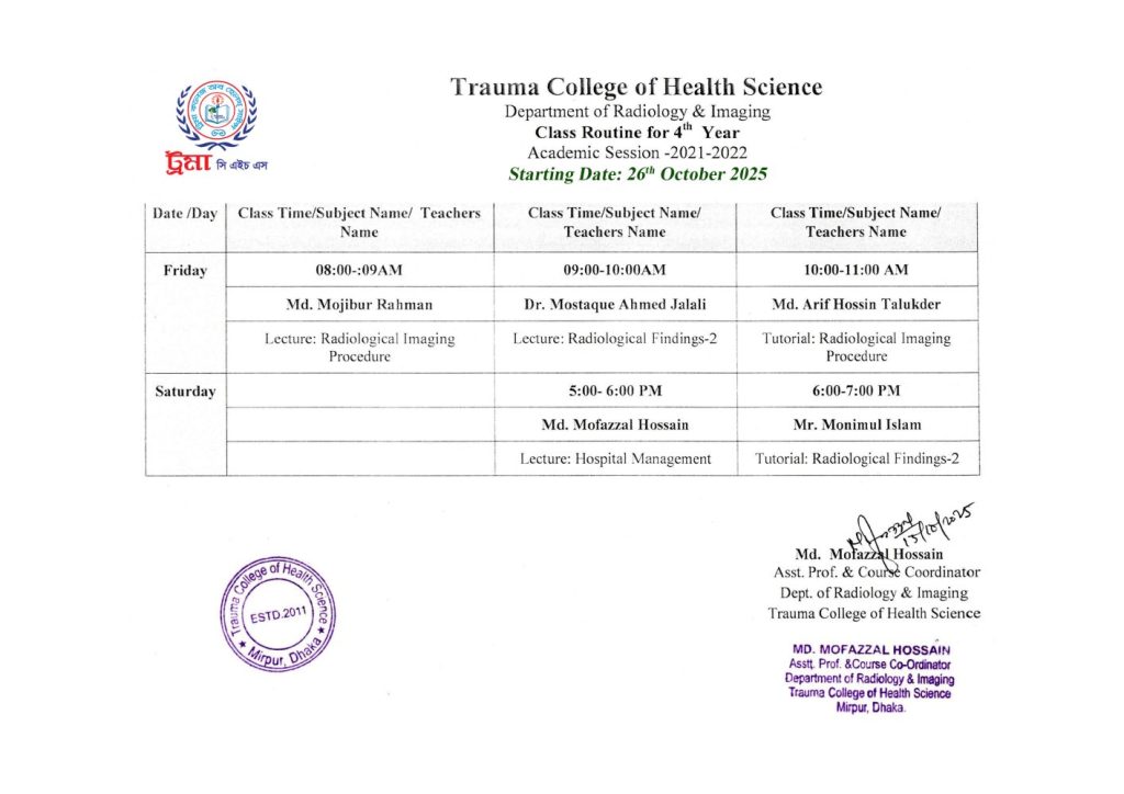 Radiology 4th Year Class Routine 2021-2022 (2nd Batch)