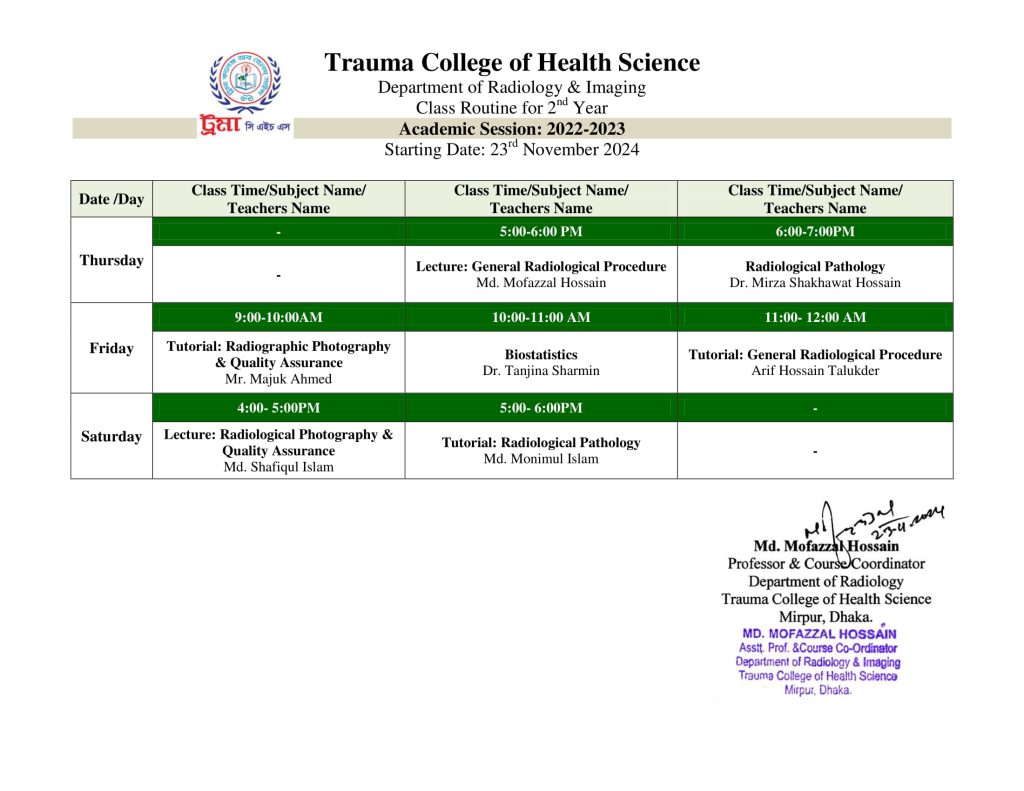 Radiology 2nd Year Class Routine 2022-2023 (3rd Batch)